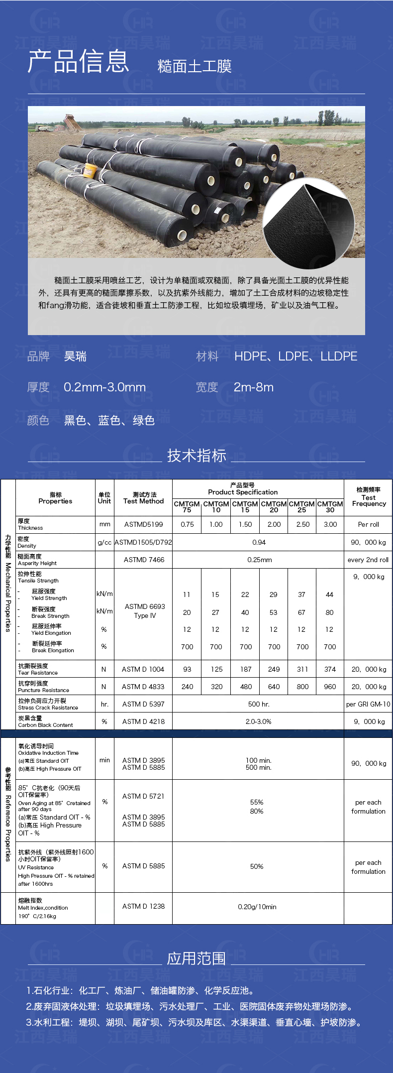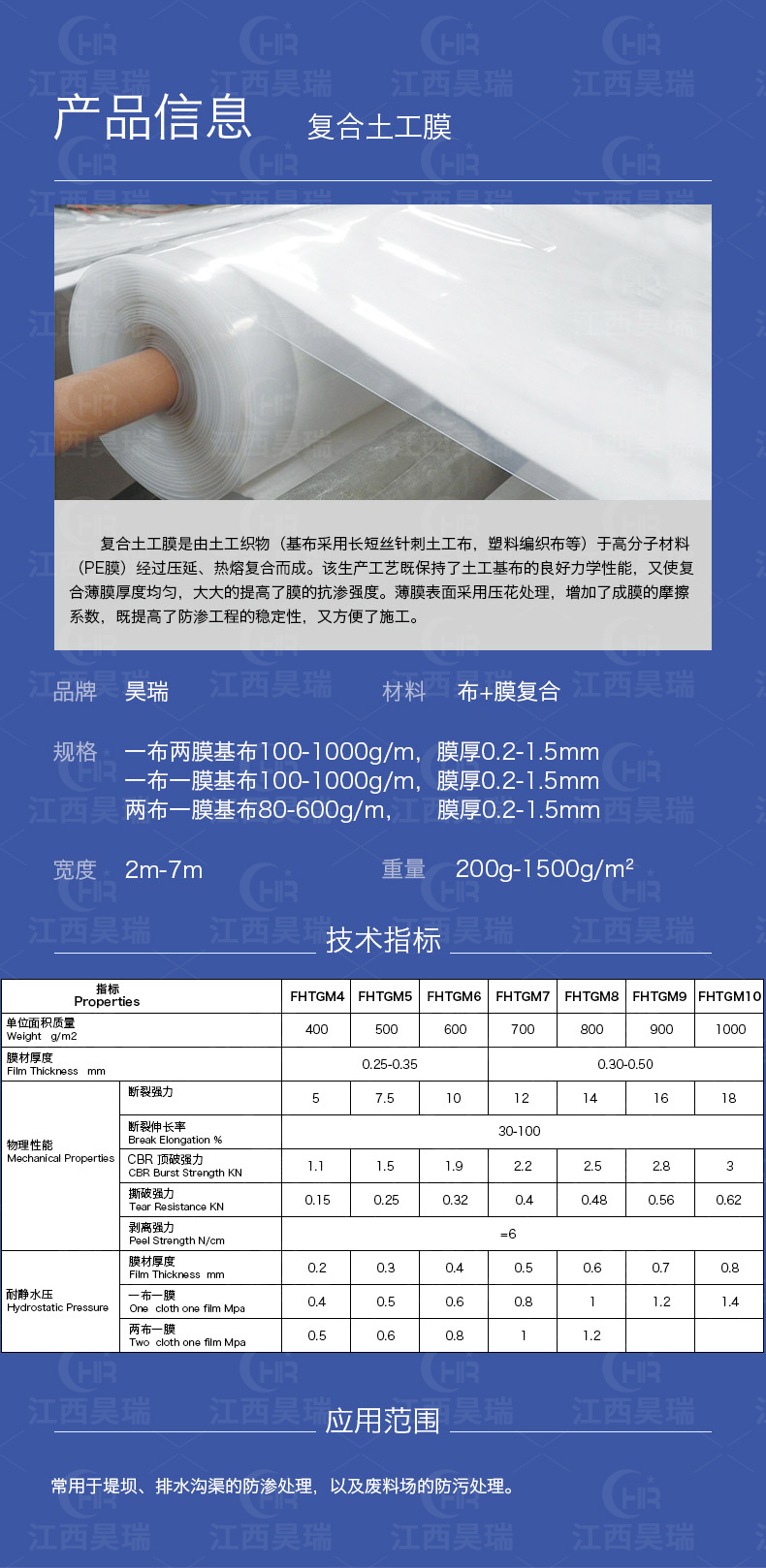 8.常用于堤坝、排水沟渠的防渗处理,以及废料场的防污处理。